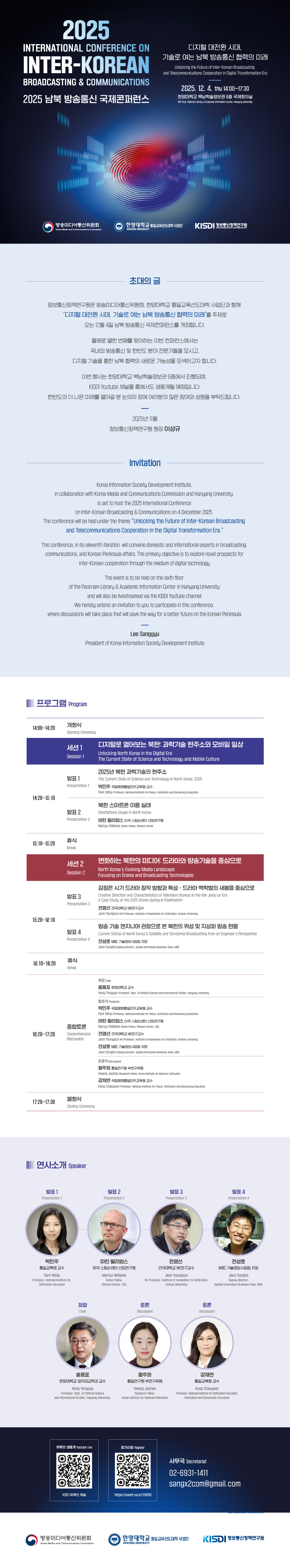- 행사명: 2025 남북 방송통신 국제컨퍼런스 (2025 International Conference on Inter-Korean Broadcasting & Communications)
